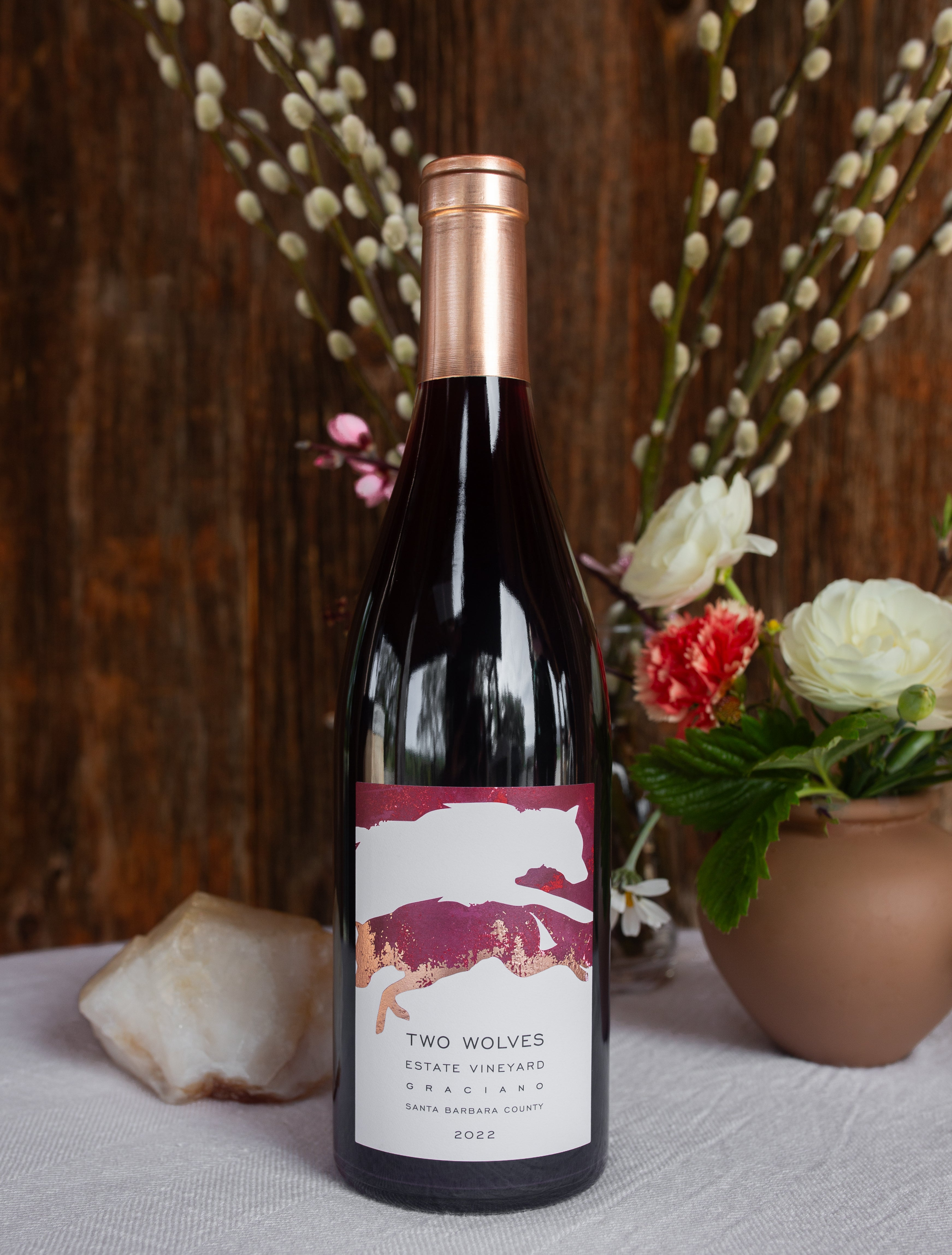 Harvested early in the morning, the beautiful and abundant fruit was loaded whole cluster into two tanks and blanketed with CO2. They were left sealed for 22 days. The fruit underwent carbonic maceration, an intercellular reaction that starts converting sugars under low oxygen conditions and produces distinct bright berry aromas. The fruit was pressed and alcoholic fermentation finished in tank. The wine was then aged in neutral oak until blending and bottling without fining or filtration.